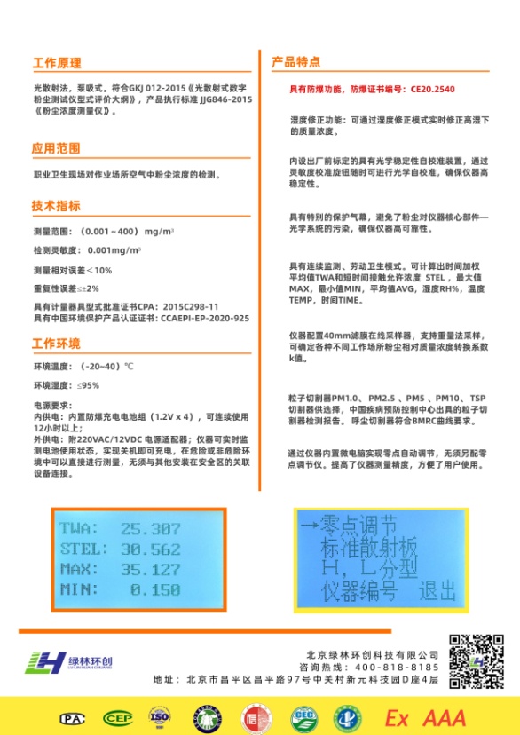 北京綠林環(huán)創(chuàng)科技有限公司是一家取得了北京市質(zhì)量技術(shù)監(jiān)督局頒發(fā)的“中華人民共和國(guó)計(jì)量器具型式批準(zhǔn)證書”和“中華人民共和國(guó)制造計(jì)量器具許可證”的行業(yè)資深的老牌粉塵儀生產(chǎn)廠家,將竭誠(chéng)為您提供最專業(yè)的解答。如有任何問題,可撥打400-818-8185進(jìn)行咨詢。